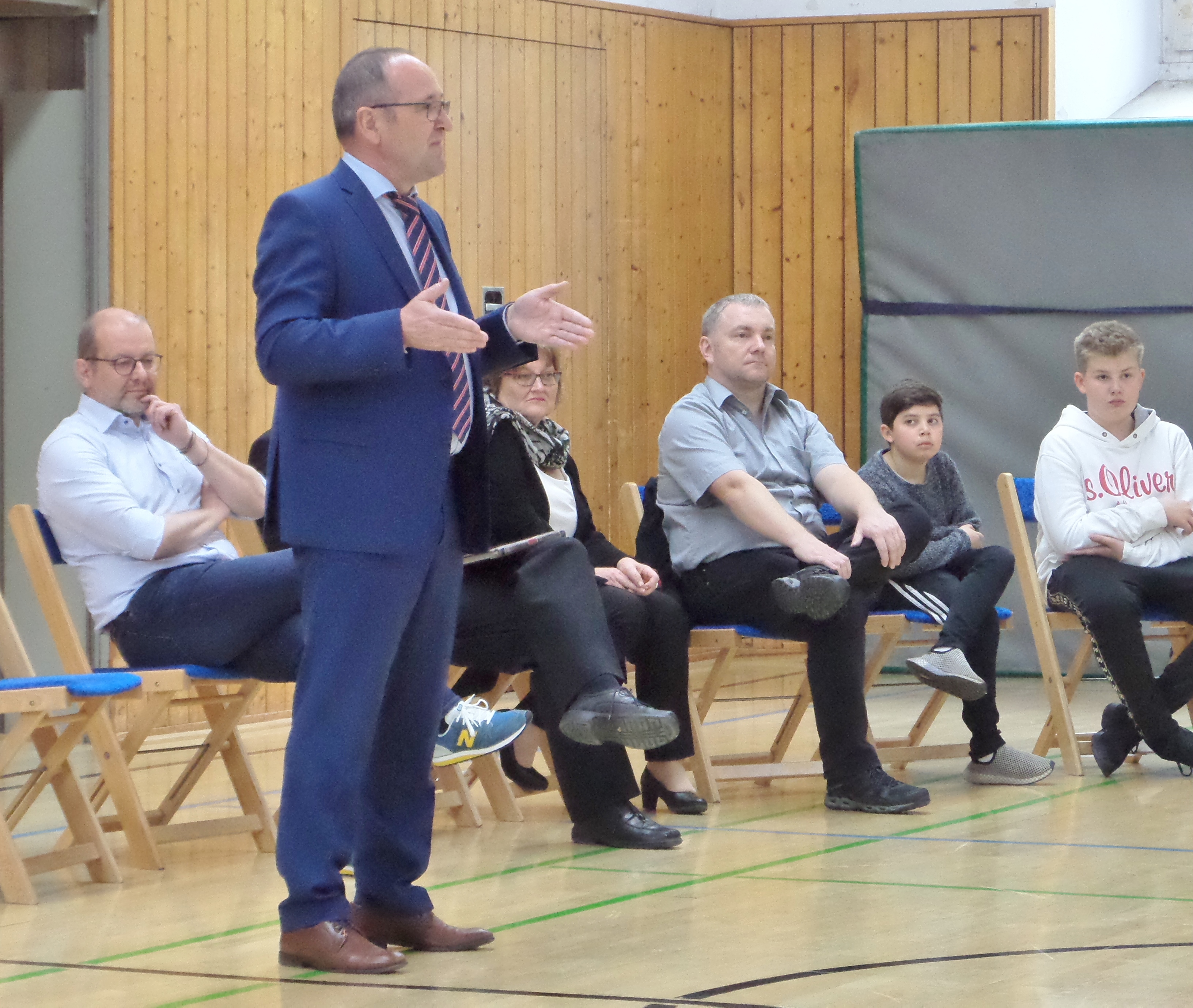 In einer offenen Gesprächsrunde trafen sich am Montag, 29. April 2019 um 13.30 Uhr über 80 Schüler*innen, Eltern und Lehrkräfte für eineinhalb Stunden in der kleinen Sporthalle, um sich Gedanken darüber zu machen, welche Möglichkeiten es gibt, sich gemeinsam am RIG für den Klimaschutz einzusetzen. Moderiert wurde die Gesprächsrunde von Herrn Streun. Das große Interesse an diesem Thema und die erkennbare Bereitschaft, sich zu engagieren, waren sehr erfreulich.