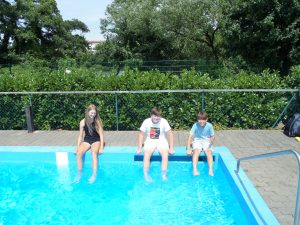 Auf diese Weise konnten wir relativ beruhigt in die Doppel gehen. Ein erneut deutlicher und überragend herausgespielter Sieg von Rebecca Schneidereit und Noah Kuhn im Zweierdoppel sicherte den Gesamtsieg. Die knappe Niederlage von Anton Beyes und Leopold Bürkle im Match-Tiebreak im Einserdoppel konnten wir unter diesen Umständen leicht verschmerzen. Als Belohnung für die anstrengenden Spiele bei heißen Temperaturen gab es eine kurze erfrischende Abkühlung im Pool des Tennis- und Schwimmvereins Poseidon Aschaffenburg, auf dessen Anlage das Finale stattfand.
