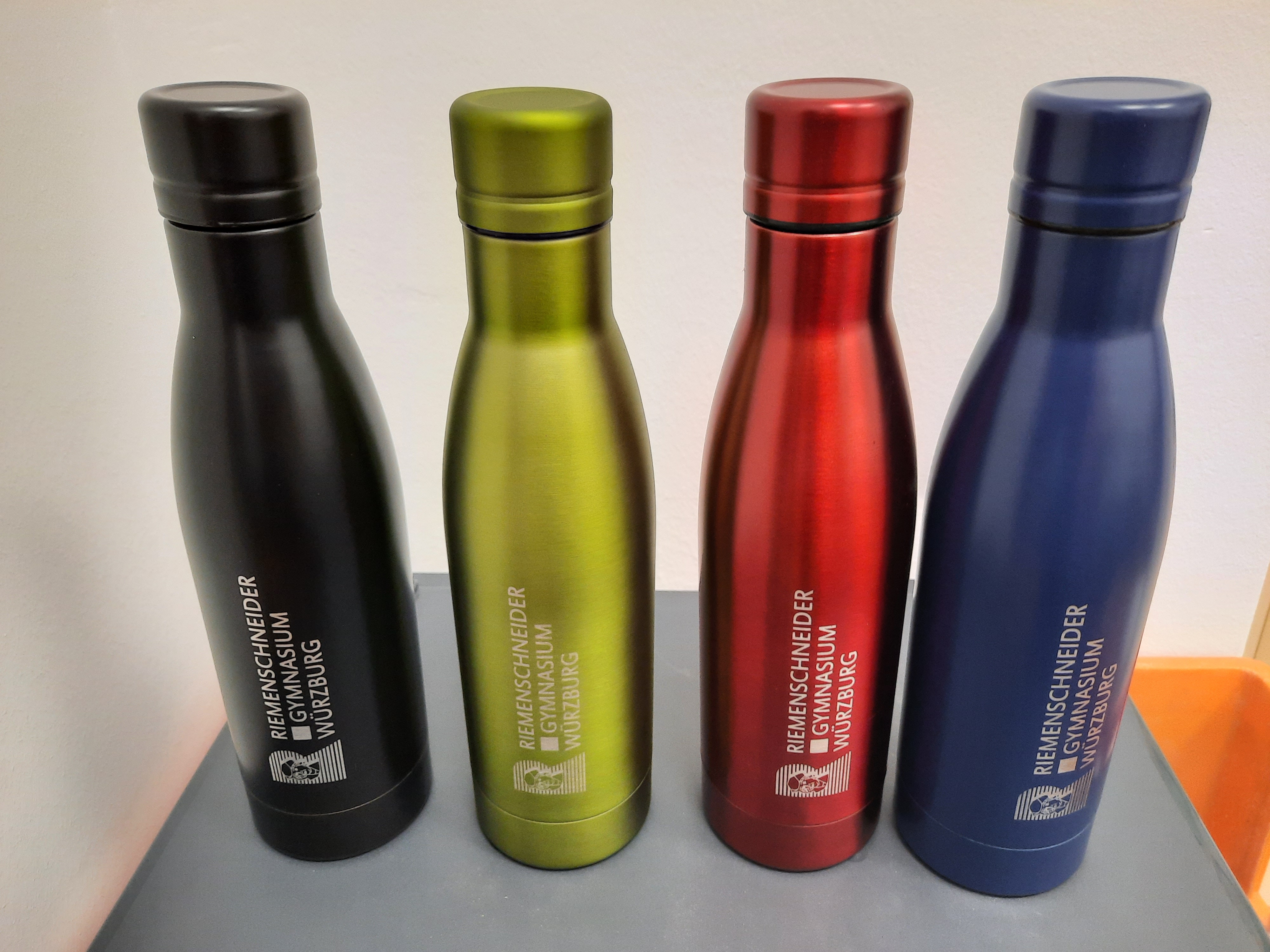 Im vergangenen Jahr wurde von den Schüler*innen des P-Seminars Sport und gesunde Ernährung unter der Leitung von Michael Müller ein Wasserspender angeschafft, der mit Spendengeldern vieler Eltern und der Sparkasse Mainfranken finanziert werden konnte. Dieser wird von der gesamten Schulfamilie sehr gut angenommen und an heißen Tagen muss man sogar Schlange stehen. Nun hat die SMV Trinkflaschen mit dem Schullogo bestellt, um dem Kauf von Plastikflaschen entgegenzuwirken. Die Flaschen gibt es nun in vier verschiedenen Farben bei der SMV zu kaufen, im Sommer halten sie Getränke kalt und im Winter warm. Ein positiver Nebeneffekt ist, dass die Schüler*innen kaum noch zuckerhaltige Getränke trinken, sondern nur noch das gefilterte und gekühlte Wasser des neuen Trinkbrunnens 🙂