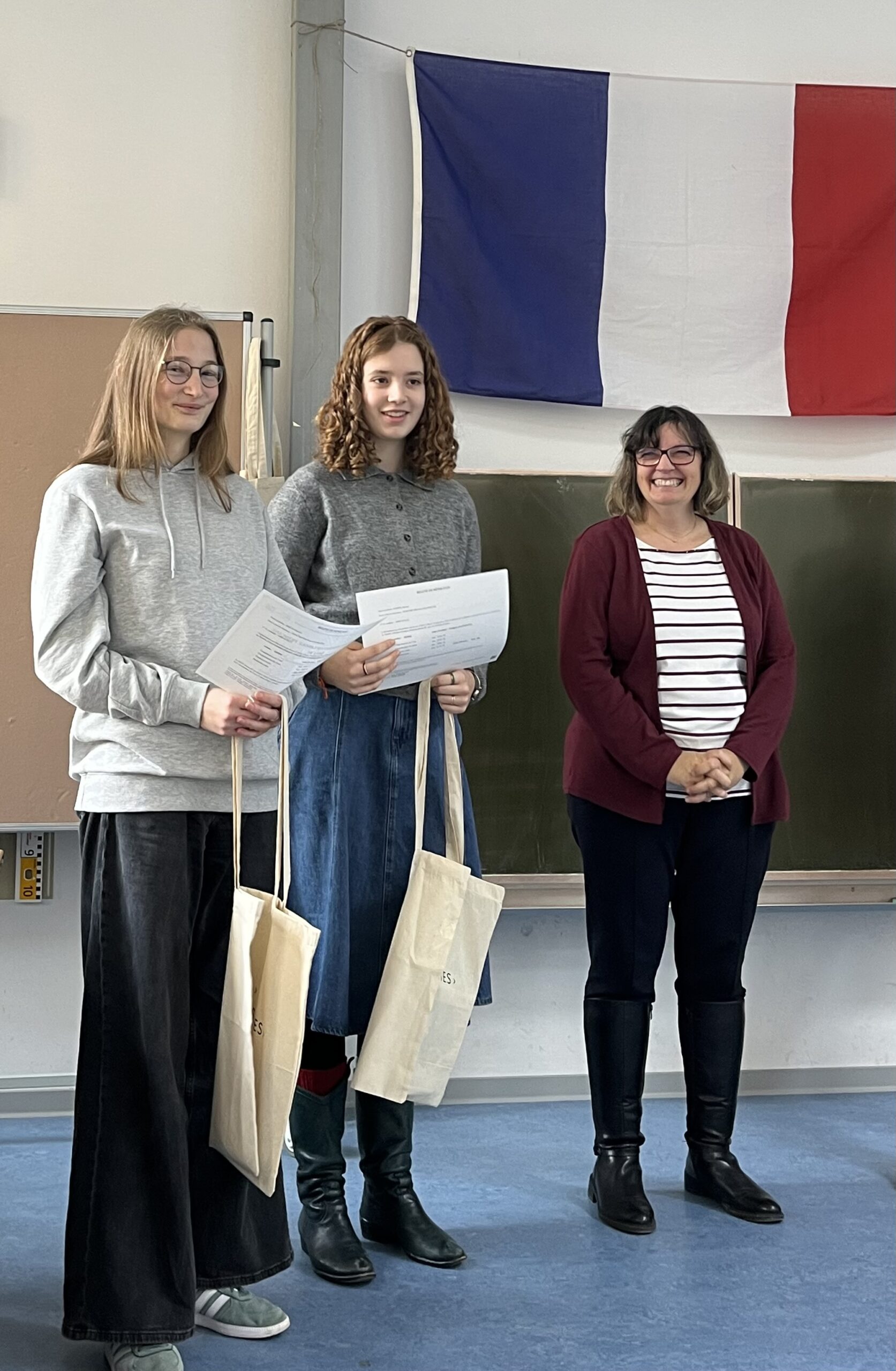 Vielen Dank an Frau Eyrich und Frau Baier, dass sie den Wahlkurs „DELF-Vorbereitung“ inklusive schriftlicher und mündlicher Prüfungen sowie auch die Austauschprogramme nach Beaugency und Ploërmel seit vielen Jahren anbieten und so zahlreichen Schülerinnen und Schülern ein sprachliches Sprungbrett bieten.