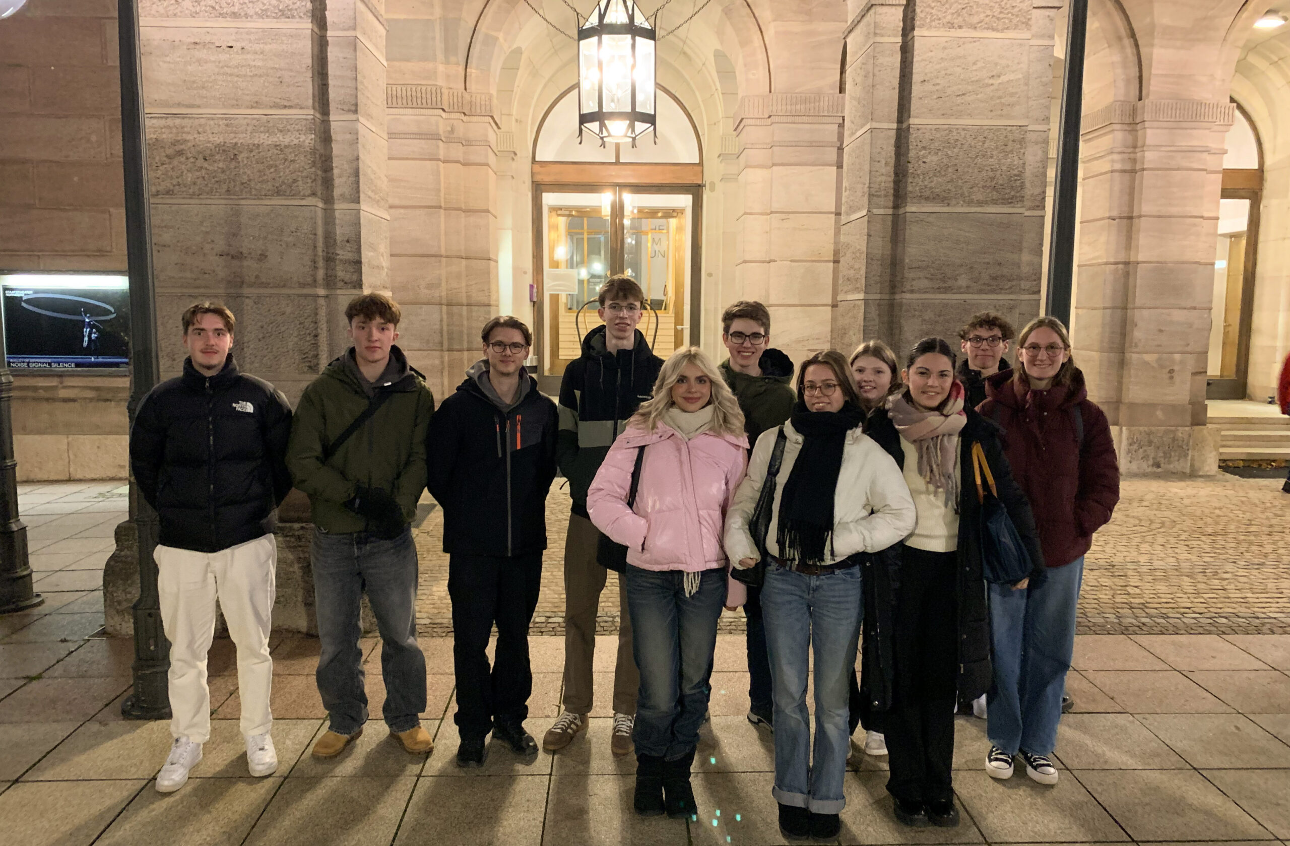 Am Sonntag, den 23.11., sind wir, die Schülerinnen und Schüler des neuen Leistungsfaches Musik vom SGW und RIG, mit unserem Lehrer Herrn Debold nach Nürnberg gefahren. Zunächst besichtigten wir die Barock- und Renaissance-Ausstellung im Germanischen Nationalmuseum. In dieser hat jede/r ein Gemälde vorgestellt und in Bezug zur jeweiligen Epoche gestellt. Danach haben die gleichen Leute Pizza und Butterkekse gegessen. In Eiseskälte marschierten wir dann durch Nürnberg in Richtung Opernhaus.