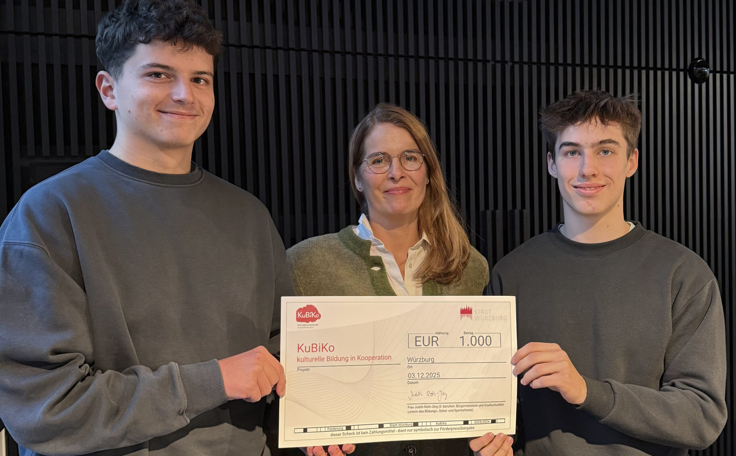 Wir freuen uns sehr über die großzügige Förderung durch die Stadt Würzburg. Am Mittwoch, den 03.12.25 nahmen wir die Förderung im Rahmen einer feierlichen Förderpreisverleihung durch unsere 3. Bürgermeisterin Frau Judith Roth-Jörg in Empfang.